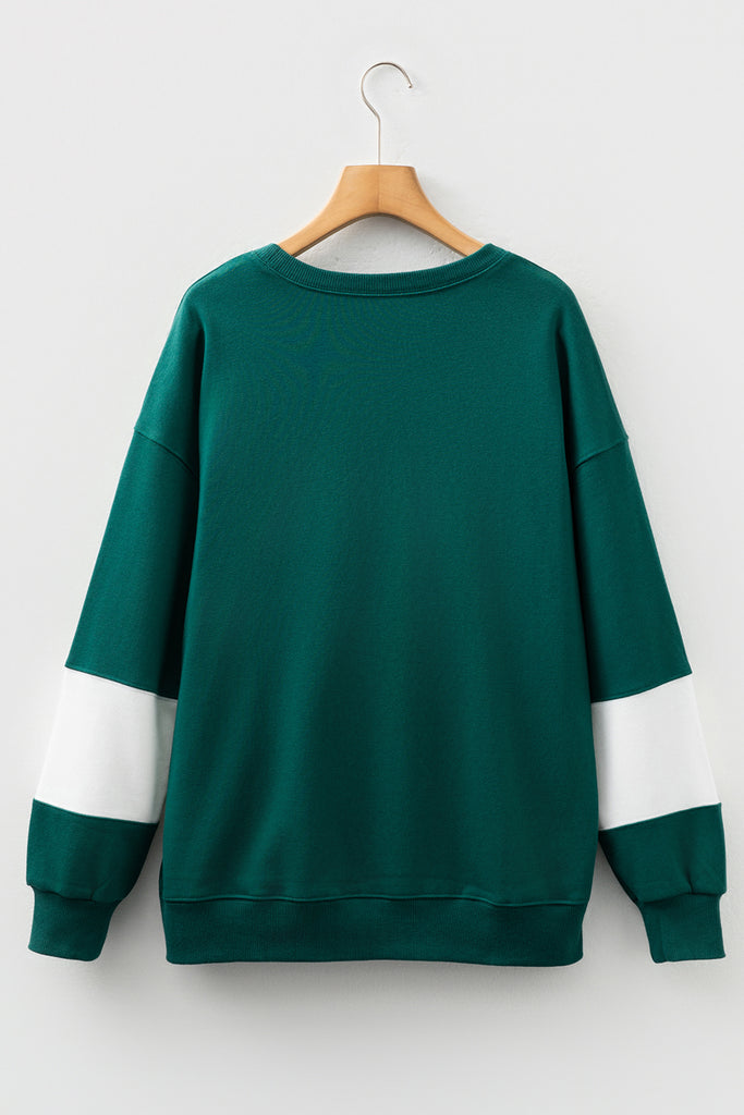Fiery Red Colorblock Drop Shoulder Baggy Sweatshirt
